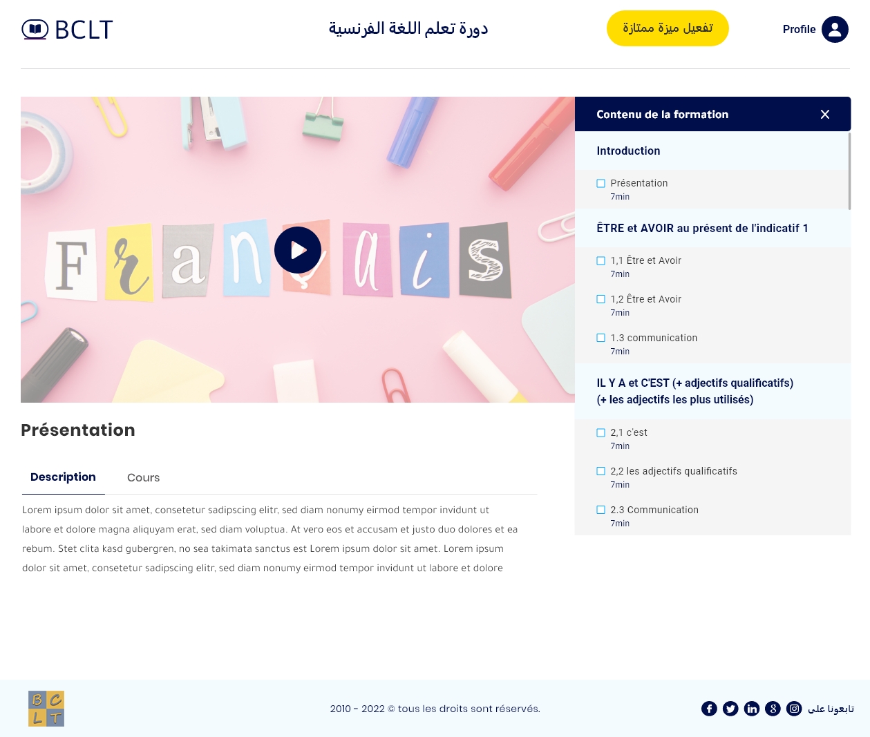دورة عبر الفيديوهات والتواصل المباشر مع الأستاذ لإتقان التواصل باللغة الفرنسية
